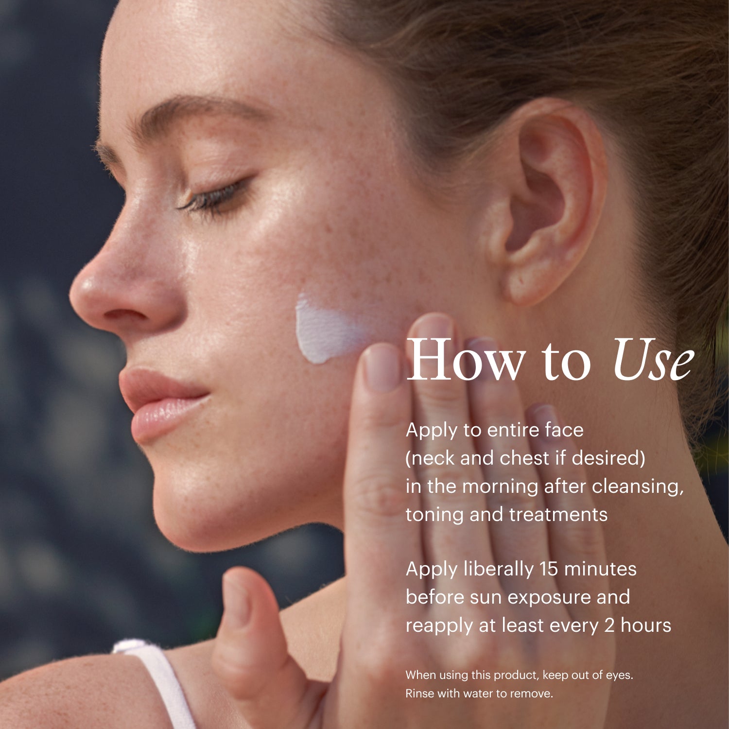 - Apply to your entire face, (neck and chest if desired) and other sun-exposed areas.