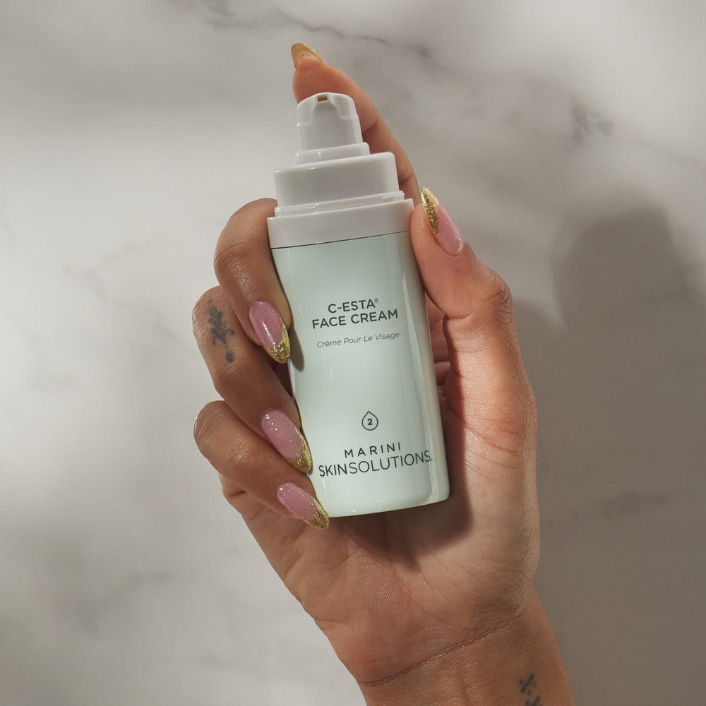 Jan Marini C-ESTA Face Cream is a powerful antioxidant cocktail, featuring lipid soluble Vitamin C, DMAE, hyaluronic acid, and Vitamins B5 & E to help reduce the appearance of fine lines and wrinkles and uneven skin texture while simultaneously protecting the skin from free radicals caused by UV exposure and environmental stressors. C-ESTA's lipid soluble form of vitamin C enables this potent antioxidant to substantially assist the skin without the need for harsh acidity levels required by traditional forms of Vitamin C - meaning superior benefit with less irritation. DMAE enhances the benefits of this Vitamin C face cream by helping to further reduce the appearance of fine lines and wrinkles giving facial contours a tighter, firmer, more "lifted" look. C-ESTA Cream is the perfect Vitamin C and antioxidant solution for individuals seeking younger, healthier looking skin. Our hydrating antioxidant face cream also includes hyaluronic acid. Great for dry to normal skin.