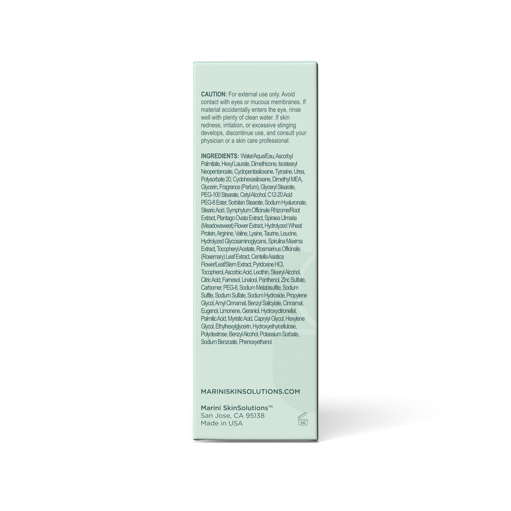 Water/Aqua/Eau, Ascorbyl Palmitate, Hexyl Laurate, Dimethicone, Isostearyl Neopentanoate, Cyclopentasiloxane, Tyrosine, Urea, Polysorbate 20, Cyclohexasiloxane, Dimethyl MEA, Glycerin, Fragrance (Parfum), Glyceryl Stearate, PEG-100 Stearate, Cetyl Alcohol, C12-20 Acid PEG-8 Ester, Sorbitan Stearate, Sodium Hyaluronate, Stearic Acid, Symphytum Officinale Rhizome/Root Extract, Plantago Ovata Extract, Spiraea Ulmaria (Meadowsweet) Flower Extract, Hydrolyzed Wheat Protein, Arginine, Valine, Lysine, Taurine, Leucine, Hydrolyzed Glycosaminoglycans, Spirulina Maxima Extract, Tocopheryl Acetate, Rosmarinus Officinalis (Rosemary) Leaf Extract, Centella Asiatica Flower/Leaf/Stem Extract, Pyridoxine HCl, Tocopherol, Ascorbic Acid, Lecithin, Stearyl Alcohol, Citric Acid, Farnesol, Linalool, Panthenol, Zinc Sulfate, Carbomer, PEG-8, Sodium Metabisulfite, Sodium Sulfite, Sodium Sulfate, Sodium Hydroxide, Propylene Glycol, Amyl Cinnamal, Benzyl Salicylate, Cinnamal, Eugenol, Limonene, Geraniol, Hydroxycitronellal, Palmitic Acid, Myristic Acid, Caprylyl Glycol, Hexylene Glycol, Ethylhexylglycerin, Hydroxyethylcellulose, Polydextrose, Benzyl Alcohol, Potassium Sorbate, Sodium Benzoate, Phenoxyethanol [BK-JM024-R05 | 01/20/24]