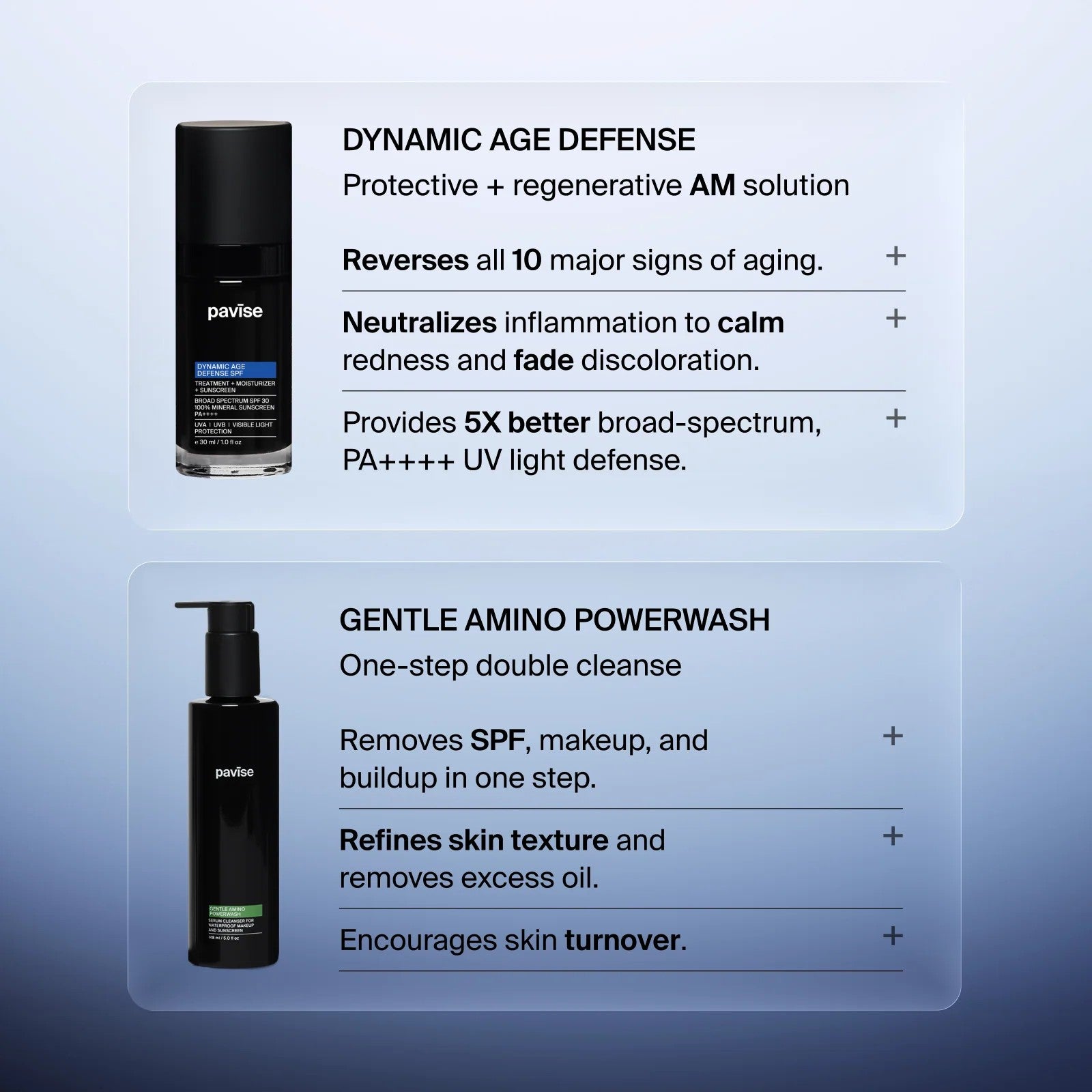 • Gentle Amino Powerwash—serum-to-lather cleanser that encourages cell turnover.