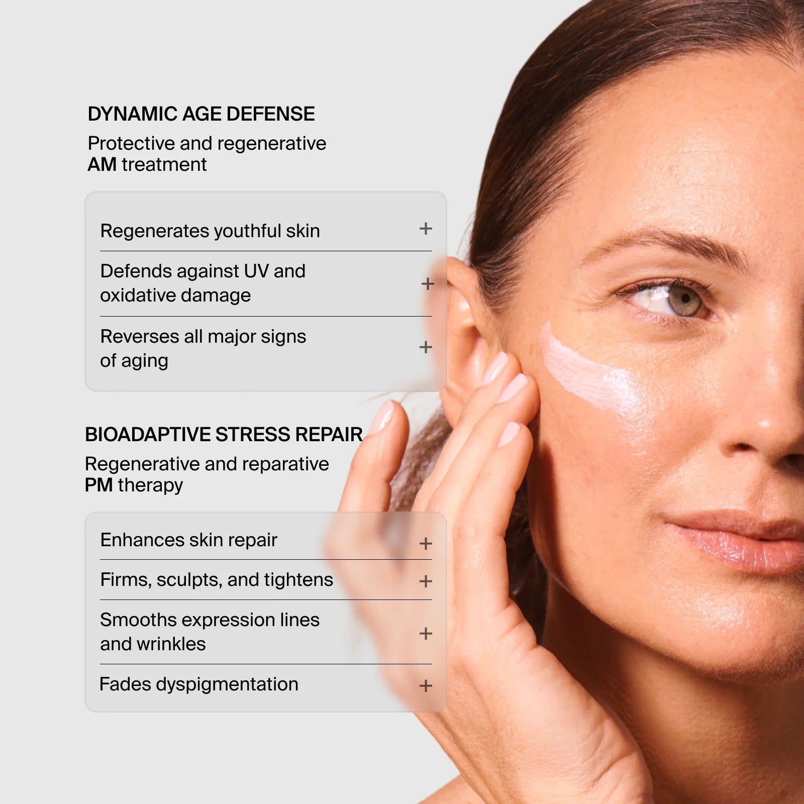 • Dynamic Age Defense Refill—protective + regenerative AM therapeutic treatment.