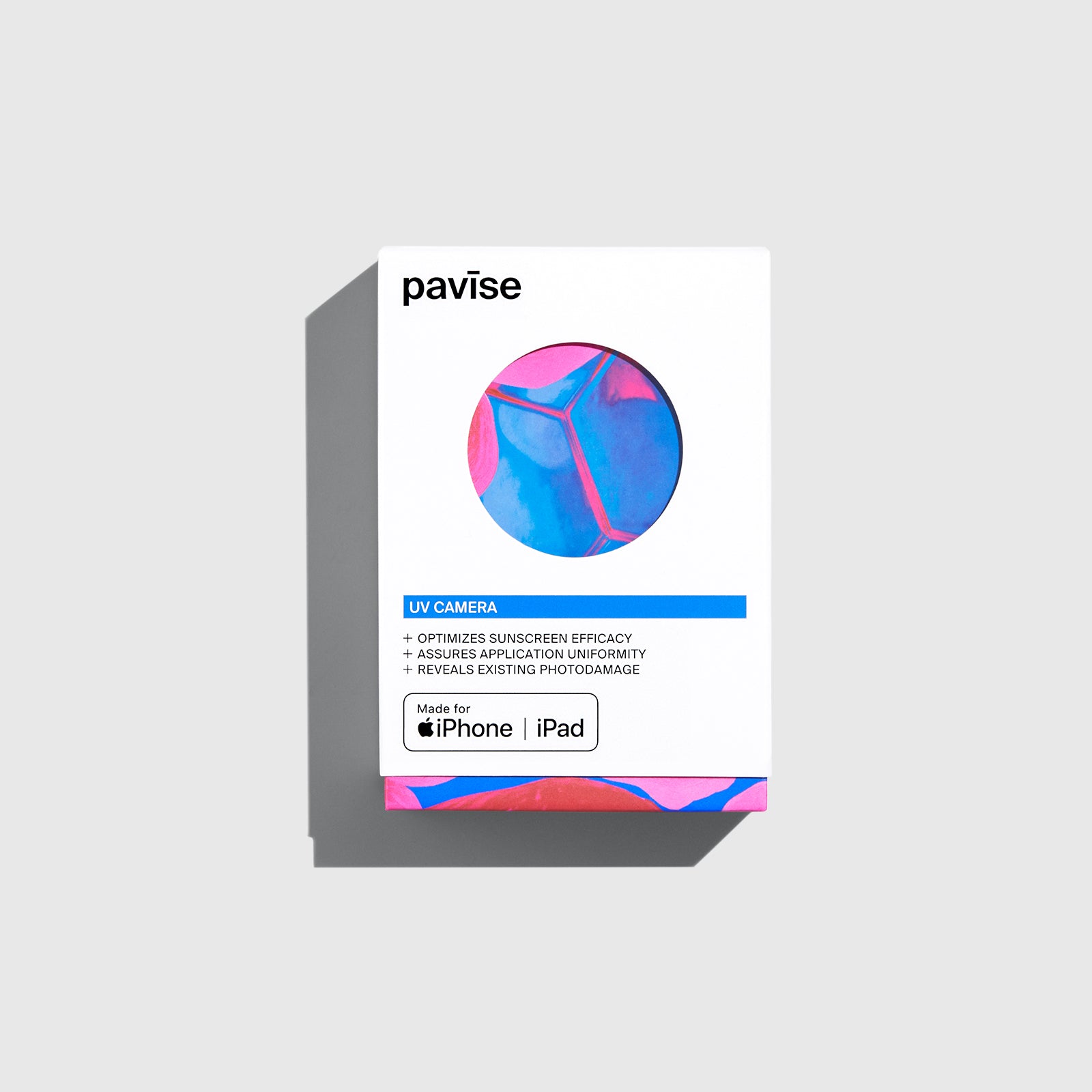 Optimize sunscreen efficacy and assure product application uniformity to give your skin the ultimate defense against photodamage. Designed for use with the Pavise app, available on the Apple App Store, the UV Camera utilizes advanced UV lens technology to capture photos and videos. The UV Camera and app reveal existing sun damage below the skin’s surface to help you spot potential dark spots, sun spots, age spots, and hyperpigmentation, to assist in your cosmetic routine. The UV Camera and app provide you a unique look at your skin in the comfort of your own space.