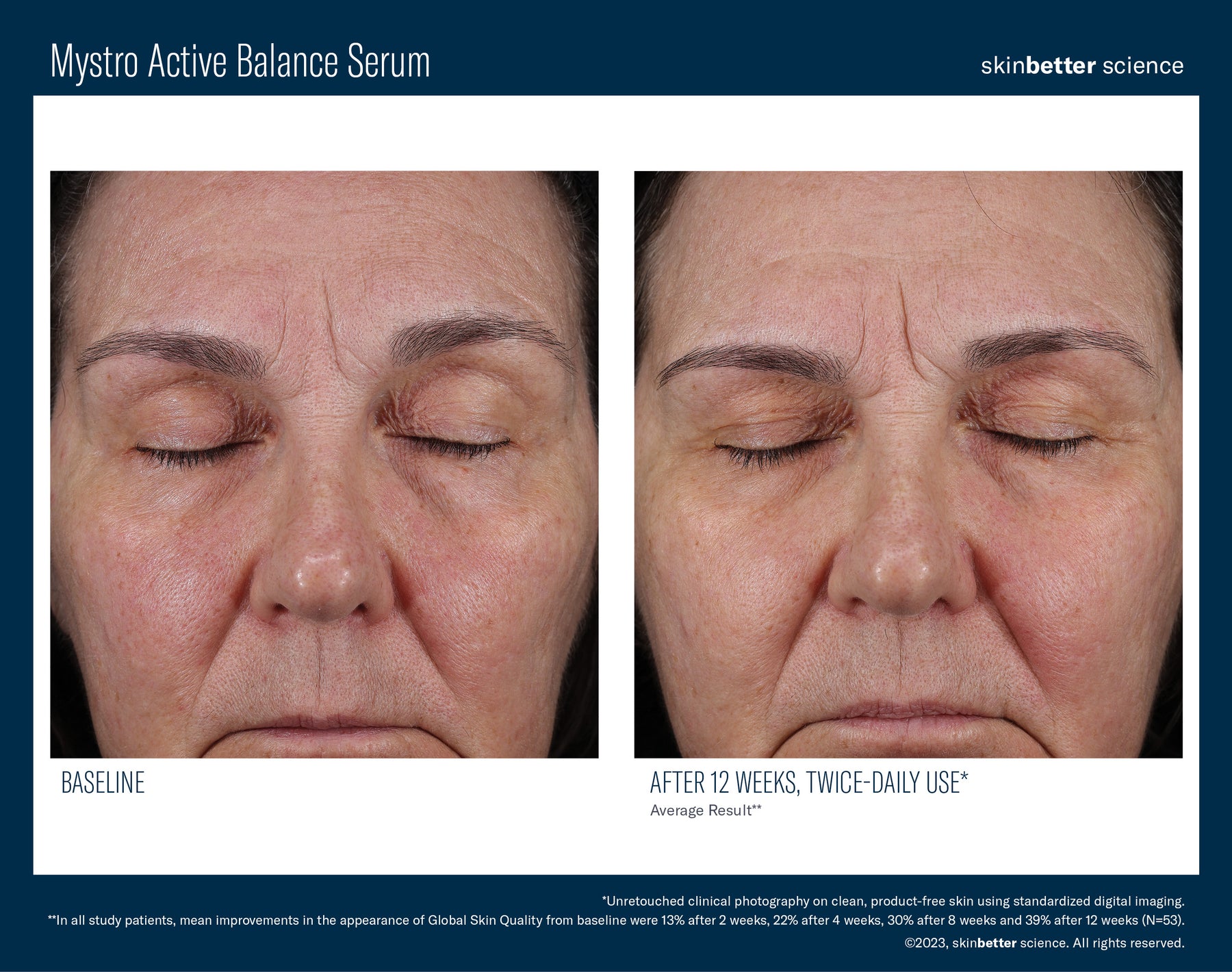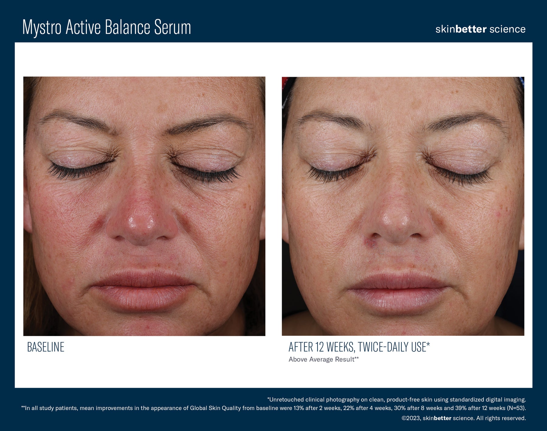 - Significant improvement in the appearance of redness, skin texture, dullness, pore size and uneven pigmentation after 8 weeks of twice-daily use.