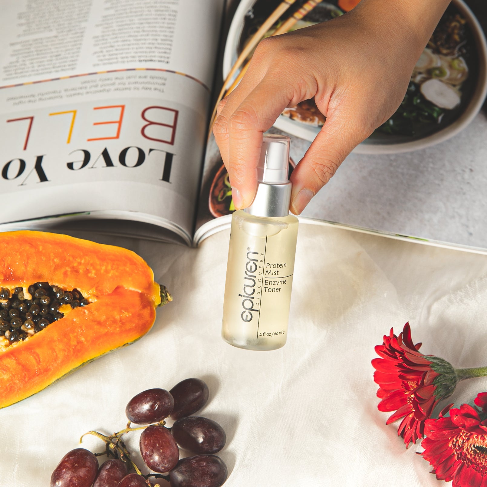 Protein Mist Enzyme Toner promotes the appearance of hydration while leaving