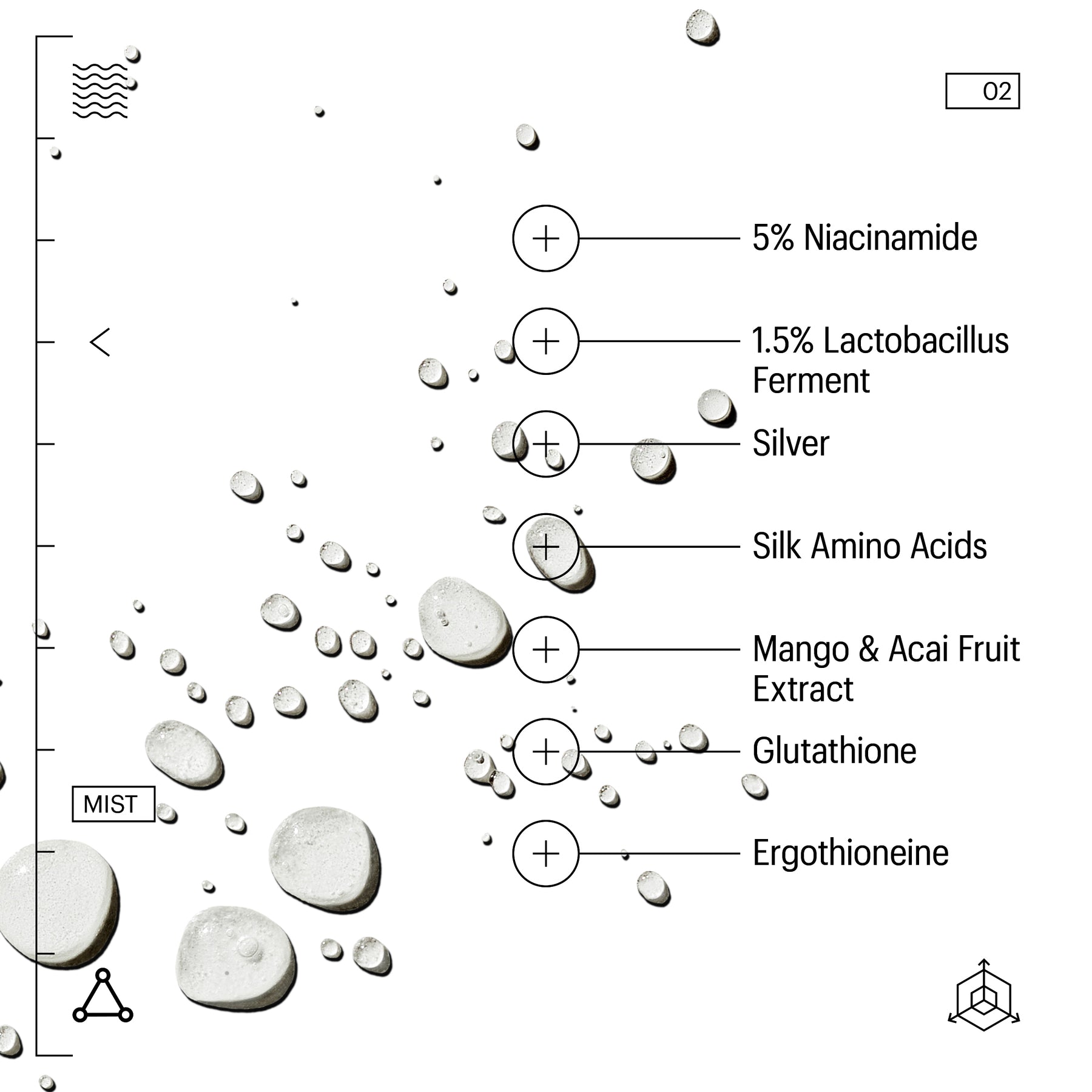The ideal travel companion, our mist is supercharged with a heavy, anti-evaporation water molecule that clings to the skin's surface for longer-lasting hydration. As concentrated as a serum, every spritz delivers a potent dose of soothing actives and restorative nutrients like Silk Amino Acids, and Ergothioneine, that work throughout the day to refine the appearance of pores and counteract the effects of jetlag and fatigue.